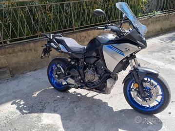 Yamaha Tracer 7 GT perfetta in tutto. Luglio 2022, in garanzia fino a luglio 2027 incluso carroattrezzi. Sella comfort, borse laterali originali Yamaha. Supporto per eventuale bauletto, del costo di oltre 400 euro. Sempre in garage. 4 Tagliandi certificati Yamaha, km 8400. La moto non ha il minimo problema ed è sempre stata custodita in garage e mai utilizzata sotto la pioggia.