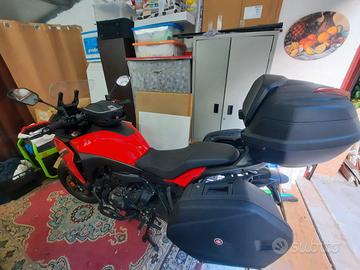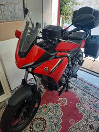 Vendo, per inutilizzo, moto Yamaha Tracer 7 GT (pari al nuovo, con soli 4100 km), anno di immatricolazione luglio 2021, completa di scarico Arrow omologato, porta usb, bauletto posteriore e valigie laterali originali, cavalletto centrale, piastra estensione cavalletto laterale originale, copertura della griglia radiatore originale, gomme nuove. Moto utilizzata pochissimo e tenuta sempre in garage. Incluso nel prezzo regalo il supporto per il telefono e la borsa serbatoio.