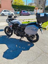 Yamaha Tracer 700 GT ABS è una sport tourer versatile e affidabile, ideale per chi cerca una moto pratica per l'uso quotidiano e ottima per il touring nel weekend. Con soli 19.450 km all'attivo, questo modello a 4 cilindri da 55 kW offre il perfetto equilibrio tra prestazioni e comfort. La sua motorizzazione garantisce un'esperienza di guida coinvolgente, mentre l'equipaggiamento completo trasforma ogni viaggio in un'occasione piacevole. La moto è in perfette condizioni: certificata senza sinistri, attualmente integra e perfettamente funzionante. La prossima revisione è prevista per giugno 2027; ultimo tagliando eseguito a 19000 km a Luglio 2025 con cambio gomme (vedere foto). Il peso di 176 kg la rende agile e gestibile, mentre la classificazione Euro 4 rispecchia gli standard ambientali attuali. Equipaggiamento Principale Praticità e Comfort: Bauletto 52 LT (può contenere 2 caschi integrali) + Poggia schiena, Borse laterali in tinta con verniciatura moto, Cupolino GT, Cavalletto centrale + laterale Sicurezza e Protezione: ABS, Paramotore