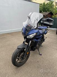 Vendo bellissima Yamaha Tracer 700 immatricolata nel 2018, colorazione blu opaco. Moto estremamente versatile, perfetta sia per il commuting urbano che per il turismo a lungo raggio grazie alla seduta confortevole e all'ottima protezione aerodinamica. La moto è stata sempre curata con attenzione e si presenta in condizioni meccaniche eccellenti. Stato del mezzo: • Manutenzione: Appena tagliandata (dimostrabile). • Documentazione: Bollo pagato e in regola. • Pneumatici: * Posteriore: Pirelli Angel GT II (Nuovo), il top per tenuta e durata. • Anteriore Mitas al 70%. • Estetica: La moto presenta due piccoli graffi da sfregamento (visibili in foto) sul paramano e sulla fiancata destra, dovuti a un leggero contatto con il muro durante il posizionamento sul cavalletto invernale. Si tratta solo di un danno estetico superficiale. Accessori inclusi: • Tris di valigie completo: Bauletto posteriore GIVI V47 (capienza 2 caschi) e due valigie laterali originali Yamaha. • Parabrezza touring maggiorato per una migliore protezione dal vento. • Supporto smartphone/navigatore. • Sella comfort. La moto è pronta all'uso, non necessita di alcun intervento immediato. Disponibile per qualsiasi visione e prova con vostro meccanico di fiducia.