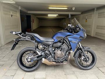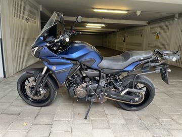 Vendo Yamaha Tracer 700+Tris di Valigie, immatricolazione Febbraio 2019 con 44100 Km percorsi principalmente in autostrada senza passeggero. Tutti i tagliandi sono stati effettuati rigorosamente in officina ufficiale Yamaha (Twinsbike-Milano) ogni anno, indipendentemente dai km percorsi e con la mia richiesta di utilizzare sempre olio sintetico top gamma. Moto utilizzata per 6 mesi all' anno e ricoverata sempre in box. Le condizioni sono eccellenti sia a livello estetico che meccanico. Non un graffio, non un difetto, mai sinistri, mai caduta.Assolutamente perfetta sotto ogni minimo dettaglio. Caratteristiche Principali: -Tagliandi certificati eseguiti annualmente -Trasmissione finale nuova (catena,corona e pignone) -Gomme premium Metzeler Roadtec 02 al 70% -Prossima revisione Febbraio 2027 -Scadenza bollo Febbraio 2027 -Incluse valigie laterali rigide+telaietti e top case 46 litri+staffa -Parabrezza touring -Griglia para radiatore La moto è in perfetto ordine di marcia, si trova a Milano in zona Sempione. Le foto sono recenti e rispecchiano lo stato attuale del mezzo. Grazie.