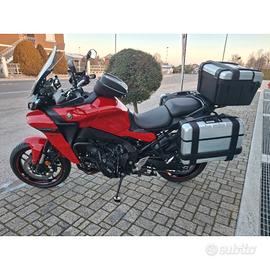 Marzo 2023 - Km 24462 - Tagliandata - Gomme 80% - Uniproprietario - Garanzia ufficiale con soccorso stradale fino a marzo 2028 - Tris valigie Trekker con bauletto da 46 litri e laterali da 33 litri son sganci rapidi dei supporti - Frecce led plus originali Yahama - Manopole riscaldate originali Yamaha - Griglia radiatore - Faretti supplementari con staffa dedicata originali Yamaha - Cambio elettronico (quick shift) - Supporto cavalletto laterale maggiorato originale YAmaha - Barre protezioni motore Givi - Borsa serbatoio Givi con attacco Tanklock.