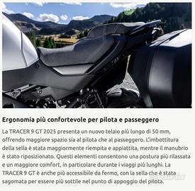 La nuova TRACER 9 GT e' estremamente potente , ha ereditato il DNA di Yamaha ed è una moto sportiva quando ti occorre, ma è altrettanto comoda quando viaggi con il