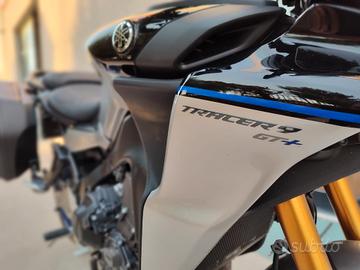 YAMAHA TRACER 9 GT+ ancora in garanzia casa madre fino al 2031. 3 mappe più una personalizzabile, sella pilota confort in gel, radar, cruise control, manopole riscaldate, sospensioni anteriori semiattive, quickshifter.