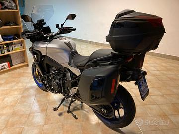 Vendo splendida Yamaha Tracer 9 GT immatricolata maggio 2021, tenuta in condizioni maniacali, pari al nuovo. Revisione eseguita a maggio 2025. Dotata di: sella confort, impianto di allarme, mantenitore di carica, protezione radiatore, barra paramotore, kit fendinebbia, caricatore USB. I copertoni hanno percorso soltanto 50 Km. Tagliandata sempre presso l'assistenza Yamaha.
