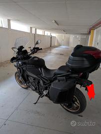 11100 km, tagliandi regolari Yamaha, estensione di garanzia 5 anni. Gomme Dunlop Sportsmart Mk 4 praticamente nuove (500 km), super prestazionali e durevoli (soprattutto rispetto alla Bridgestone di serie). Quasi perfetta... piccoli graffi su paramani e borsa lato dx, per caduta da fermo. Catena pulita e lubrificata frequentemente. No pista, principalmente usata per girate sui passi di montagna Toscani. No lavoro e pochissima città. Vendo per ritorno a una naked, per le moto da viaggio ci sarà tempo...