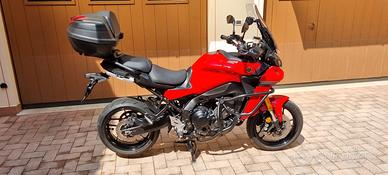 Tracer 9 gt ottobre 2021 , tagliandi eseguiti regolarmente in concessionaria , tagliando da 480€ appena fatto con filtro aria, candele, corpo farfallato, gioco valvole, olio. Gomme appena sostituite , catena corona pignone sotituiti lo scorso anno. Moto con garanzia estesa fino al 2028. Dotazione di serie : Valigie laterali . Sospensioni elettroniche. Cambio con Quick shifter . Cavalletto centrale. Manopole riscaldate. Cruise control. Accessori in aggiunta: Bielletta per abbassamento moto. Baule posteriore originale Griglia pararadiatore originale, Barre paramotore , Supporto porta smartphone givi.