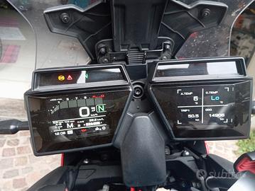Yamaha tracer 9 GT luglio 2022 km 15000 tagliandi annuali eseguiti in concessionaria Yamaha documentabili. Accessori: selle comfort (fornisco anche le selle originali) porta targa sportivo griglia cromata di protezione radiatore bauletto 54l con para schiena Di serie: cambio Quick shift up and down manopole riscaldate bauletti laterali, tutti i bauli si aprono con la stessa chiave di avviamento Cruise control . gomme Bridgestone a circa il 40% prezzo trattabile