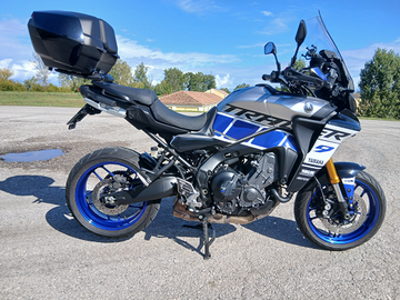 Yamaha Tracer 9 gt 2021 immatricolata aprile 2022 con 31.000 km in perfette condizioni. Oltre agli accessori di serie tra cui borse laterali, manopole riscaldate, cambio elettronico salita/discesa, monta anche copriradiatore, portatarga sportivo, bauletto centrale da 45 lt originale e kit pellicole personalizzate (rimovibili per tornare all'originale).