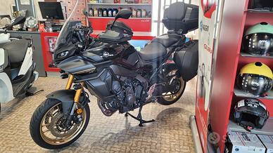 Yamaha Tracer 9 Gt pari al nuovo, unico proprietario, completa di bauletto posteriore e bauletti laterali estraibili, borsello givi serbatoio, barre protezione laterali, faretti di profondità, griglia protezione radiatore, tagliandata e garantita dalla nostra concessionaria ufficiale Piaggio Vespa Gilera Aprilia scooter.
