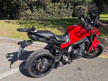 Yamaha Tracer 9 – Benzina, semiautomatico (manuale con Quick Shift sia in salita che in scalata). Moto Sport Touring del 2022 con soli 22.200 km, sempre custodita in garage, mai incidentata e in perfette condizioni di marcia. Regolarmente tagliandata in officina Yamaha (Moto Millennium, Roma), con relative fatture disponibili. Ultimo tagliando eseguito a luglio (a km 17.800), gomme Bridgestone Battlax Sport Touring sostituite a agosto (percorsi 3.500 km). La moto è ancora in garanzia fino ad aprile 2027 (estensione garanzia ufficiale Yamaha), e il bollo è pagato fino a gennaio 2027. - Immatricolazione: 04/2022, Chilometraggio: 22.200 km - Motore: Benzina, semiautomatico (manuale con Quick Shift), 890 cm³, 88 kW (120 PS), Euro 5 - Storico e condizioni: Mai incidentata, nessun danno, sempre garage, perfettamente funzionante - Sicurezza: Allarme antifurto ufficiale Yamaha - Comfort e praticità: manopole riscaldate, presa doppia USB, supporto cavalletto laterale - Garanzie e bollo: estensione garanzia ufficiale Yamaha fino ad aprile 2027, bollo fino a gennaio 2027 Inoltre, da concordare a parte, è disponibile il bauletto originale Yamaha 45l, con placche rosse. Il prezzo non è trattabile.
