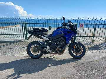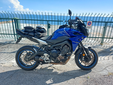 vendo Yamaha Tracer 900 2017, km 28000 circa, tagliandata inizio stagione 2025 con sostituzione kit catena corona pignone. Monta mono ammortizzatore yss e scarico completo Mivv omologato e cupolino basso nero. Comprese tutte le parti originali