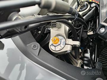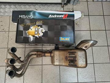 Terminale di scarico completo Arrow con mappatura dedicata al banco, mono ammortizzatore Ohlins, kit forcella Andreani Misano EVO, estensione cavalletto e nottolini cavalletto.