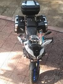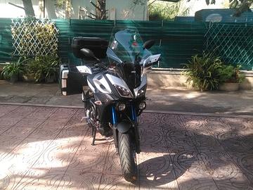 Yamaha Tracer 900 “blu race”, data di immatricolazione 09/2016 con ABS e tre mappe originali dalla casa madre, a settembre 2023 montate molle progressive, pneumatici sostituiti a giugno 2025, tutti i tagliandi sono stati effettuati ogni anno e presso officina Yamaha, La moto ha i seguenti accessori GIVI: tris valige posteriore 52l, laterali 46l, protezione motore, paravento alto, in più faretti anteriori originali Yamaha, è sempre stata custodita in garage privato.