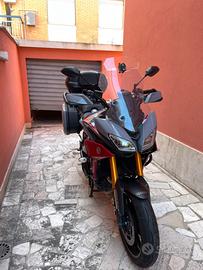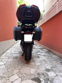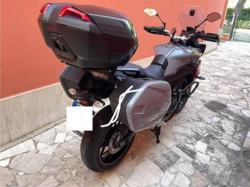 Vendo Yamaha Tracer 900 GT 2019 con 36.000 km reali, mai caduta né incidentata, sempre custodita in garage. Moto in condizioni eccellenti, perfetta per chi cerca una sport-touring versatile, ideale per lunghi viaggi in totale comfort, ma che non disdegna uscite veloci in solitaria grazie alla ciclistica evoluta. Dotazione e accessori: • Tris valigie originali Yamaha (laterali + bauletto 48L) → nel bauletto entrano 2 caschi integrali • Doppio cupolino: originale + parabrezza maggiorato regolabile → ottima protezione aerodinamica per viaggi • Paramotore tubolare • Riser manubrio per postura più comoda sulle lunghe percorrenze • Sella comfort in gel → ideale per turismo e viaggi lunghi • Filtro aria lavabile Tecnica e allestimento GT: • Strumentazione TFT a colori • Cruise control → perfetto per viaggi autostradali • Quick shifter • Controllo di trazione (TCS) regolabile su 2 livelli • 3 mappature motore • Manopole riscaldate → comfort anche nei mesi freddi • Forcella KYB completamente regolabile + mono con precarico remoto → permette una guida precisa anche nel misto e nelle uscite più sportive Manutenzione: • Tagliandi eseguiti regolarmente ogni anno • Ultimo tagliando effettuato 3.000 km fa • Gomme nuove • Trasmissione (catena, corona, pignone) sostituita recentemente Moto pronta per partire, perfetta per chi vuole una vera turistica veloce, comoda nei lunghi trasferimenti ma anche divertente e reattiva tra le curve.