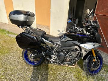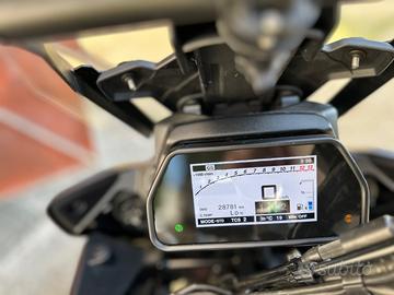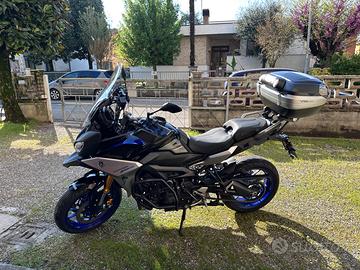 Yamaha Tracer 900 GT in condizioni eccellenti, immatricolata a marzo 2019 con 28.700 km, tagliandata ufficialmente Yamaha (visionabile a Modena/Carpi). Tagliando dei 30.000 km già fatto, candele nuove e batteria YUASA sostituita a giugno 2024. Sempre in garage, mai incidentata né caduta, usata solo su strada in mappa standard. Gomme Pirelli Angel GT II in buono stato (70% post., 80% ant.). Tenuta maniacalmente, sempre con mantenitore di carica. Dotazione GT:Valigie rigide, cruise control, quickshifter, sospensioni regolabili, manopole riscaldabili, strumentazione TFT. Accessori (oltre 2.800 €):Scarico Akrapovic, sella comfort, parabrezza maggiorato, supporto e staffa navigatore, frecce a LED, portatarga sportivo, paramani, paramotore, bauletto Givi V56, paraurti estetico. Moto pari al nuovo, pronta a partire. Il prezzo è escluso di passaggio.