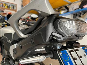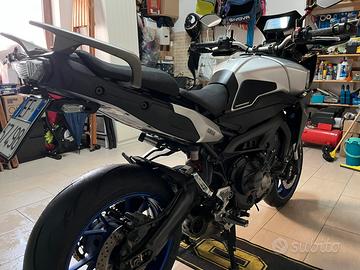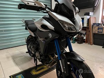 Yamaha Tracer ABS del 2016, 54000 km. Tre cilindri, 115 cv. Accessoriata con: scarico completo Akrapovic omologato con db modificato (estraibile), portatarga sportivo, frecce led sequenziali, mono con comando remoto precarico, borse laterali semirigide Givi con telaietti, bauletto Yamaha (funziona con chiave accensione) con piastra originale, cupolino sportivo + cupolino alto, selle confort Yamaha, griglia radiatore, parafango anteriore carbonio, CarPlay Midland con TPS, dashcam anteriore e posteriore, Gomme Avon 3d supersport appena montate (0 km), catena/corona/pignone appena montati (0 km). Tre chiavi, manuali e tutti i pezzi originali presenti. Tagliando appena effettuato, mono e forcelle revisionate. Pasticche nuove. Il prezzo si intende senza accessori e non trattabile. Valuto offerte sensate per la moto completa di accessori.