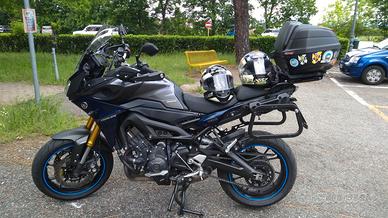 Vendo Yamaha Tracer 900 anno 10/2016 con 68.000 km percorsi facendo mototurismo in coppia. Moto acquistata da concessionario ufficiale Yamaha e sempre seguita dallo stesso ( disponibili ft. e libretto tagliandi) La moto è equipaggiata sin dall' origine con i seguenti accessori originali Yamaha: Scarico completo akrapovic omologato Paramotore Frecce led Portatarga sportivo Selle comfort Borse laterali Bauletto da 52 litri ABS Traction Control Cavalletto centrale Fari led Luci diurne led 2.000 km fa' circa è stato sostituito il comparto trasmissione composto da catena corona e pignone; inoltre è stata sostituita la batteria , le candele ed entrambi gli pneumatici. La moto è sempre tenuta in box chiuso e non è mai stata oggetto di sinistri o modifiche se non il ricondizionamento delle sospensioni anteriori e di quella posteriore. Moto perfettamente funzionante. Prezzo trattabile dopo visione. Marco 349/86180