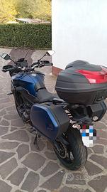 Yamaha Tracer 900 GT anno 2018, km 39534. Cambio olio e filtro ogni anno a inizio stagione indipendentemente dai km (aprile/maggio). A 31000 km ho effettuato olio e filtro, candele, filtro aria, kit trasmissione, sostituzione olio freni. Pastiglie freni nuove con zero km. Gomma anteriore Pirelli Angel GT al 90%, posteriore Pirelli Angel GT 2 all'80%. Tris di valige originali Yamaha, bauletto da 50 litri. Nessun lavoro da fare moto perfetta.