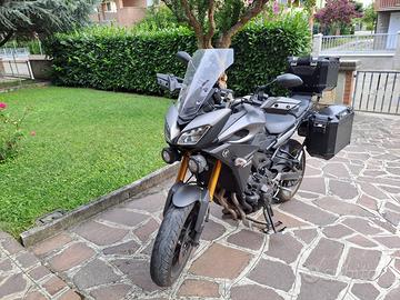 Yamaha Tracer mt 09 anno immatricolazione 2015, km 82100. Moto sempre tagliandata e revisionata presso officine autorizzate Yamaha. insieme alla moto fornisco kit valigie laterali rigide Givi Trekker lt 35 + bauletto Givi Trekker Outback lt 42 con relative borse "storm bag" interne. Fornisco inoltre 2 borse Givi Motocargo espandibili XS310B Xstream lt 15, con relative copertine antipioggia. Fornisco anche navigatore Garmin Zumo 395 con relativo attacco montato sulla moto. a km 75000 eseguito 10° tagliando + sostituzione kit trasmissione (catena / corona / pignone) + cuscinetti sterzo. Moto tenuta sempre in garage interno. Prezzo leggermente trattabile.