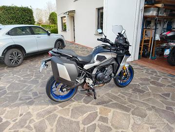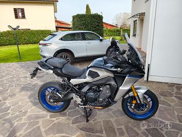 Vendo fantastica Tracer 9 GT+ immatricolata a Luglio 2023.Moto perfetta,sempre tagliandata e sempre riposta in garage privato completamente coperto.Moto con nemmeno 9000km appena tagliandata(concessionaria ufficiale Motorando di Lido di Camaiore)e gommata con Metzeler Roadtec 02.La moto monta i seguenti accessori.Protezioni serbatoio (centrale e laterali)originali Yamaha "Road to Fuji",portatarga sportivo originale Yamaha,pararadiatote originale Yamaha,tappo olio Gilles originale da catalogo Yamaha,pedane posteriori passeggero gommate originali Yamaha da My25.Sono chiaramente comprese chiaramente le borse laterali originali con baffo grigio Icon.Prezzo poco trattabile.Conattattemi per qualsiasi info.Moto veramente pari al nuovo.