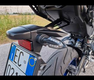 Moto accessoriata come in foto: paramani maggiorati, cupolino antivento maggiorato, becco frontale rimovibile, rete radiatore, para motore laterale, frecce tutte 4 originali Yamaha carbon, staffa porta navigatore/telefono, bauletto posteriore con luce stop. No borse laterali.