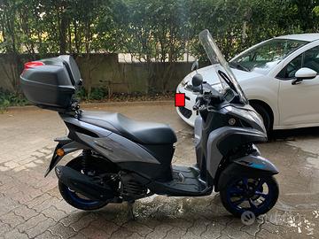Vendo Yamaha Tricity 125cc 9 kW (12 CV) Benzina di colore Grigio/Nero Cerchi Blu cobalto immatricolato a novembre 2020 con solo 3.000 km. ACCESSORI AGGIUNTIVI. PERFETTE CONDIZIONI_USATO POCHE VOLTE_PRATICAMENTE NUOVO_SEMPRE CHIUSO IN GARAGE. Vendo per inutilizzo. Motore: 125 cc, monocilindrico, 4 tempi, SOHC, raffreddato ad aria. Potenza: 8,9 kW (12 CV) a 7.000 giri/min. Coppia:10,5 Nm a 5.500 giri/min. Trasmissione: CVT (trasmissione a variazione continua). Freni: Freno anteriore a disco doppio, freno posteriore a disco singolo. Sospensioni: Sospensione anteriore a forcella telescopica, sospensione posteriore a monoammortizzatore. Sistema ABS per migliorare la sicurezza Ruote: Tre ruote, anteriore e posteriore con pneumatici 90/90-12. display LCD con informazioni sulla velocità, il livello di carburante e altri dati. Gruppo LED anteriore.Consumi: 2,3 l/100 km.Lo scooter é visionabile a Cosenza.