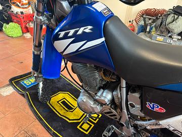 Salve vendo la mia Yamaha ttr 600 moto in perfette condizioni meccaniche e ciclistiche con vari accessori e modifiche scarico Leo vinci x3 top saund da paura!!!!!! Prestazioni da cross gomme nuove varie protezioni e navigatore bluetooth fari supplementari e staffa strumentazione in alluminio strumentazione modificata e rinforzata plastiche in buone condizioni avviamento elettrico!!!!!!!! Non ne fanno più dí queste moto un vero mulo da divertimento