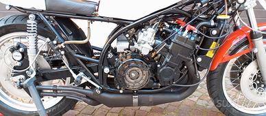 Questa motocicletta è più unica che rara. Arriva direttamente dalla Yamaha Racing Heritage Club (team ufficiale Yamaha Europe negli eventi classici) E' stata assemblata da Thierry Gerin meccanico del Y R H C. Thierry è stato per più di 10 anni il meccanico di Kenny Roberts. Piu'dell'80% delle parti della motocicletta sono nuove, originali YAMAHA e acquistate in giappone. Albero motore, cilindri, pistoni, cambio, dischi freno, strumentazione, comandi, scarichi, radiatore ecc. ecc. La moto è totalmente originale e perfettamente funzionante. Dopo che è stata acquistata dalla YRHC ha fatto circa 20 giri All'Asi Motor Show di Varano Melegari. Di Yamaha TZ 750 A ne sono state prodotte 200. Decisamente un pezzo da alta collezione. La motocicletta è visibile a Treviso previo appuntamento. Se volete vedere 58 foto e un video della moto con il motore acceso, visitate il nostro sito. Per informazioni:serri_stefano@libero.it oppure telefonare al