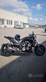 Vendo la mia Yamaha V-Max. La moto è stata modificata in ogni sua parte come mostrato in foto. Forcelle anteriori, ammortizzatori posteriori, cerchi da 17" con pneumatici omologati. Motore 1300 con scarico completo 4/2/1 e carburatori FCR a valvola piatta da 41". Pompa freno anteriore e pompa frizione "Discacciati". Impianto frenante Beringer, carter motore trasparenti e molto altro. Prezzo non trattabile!