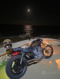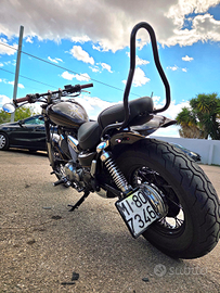 Monta una SissyBar sul posteriore, targa laterale con illuminazione dedicata, frecce,stop e luci di coda tutto integrato nelle lucciole posteriori.