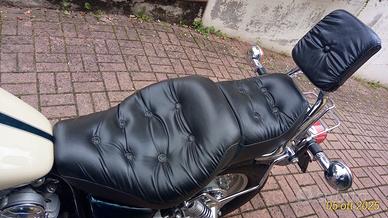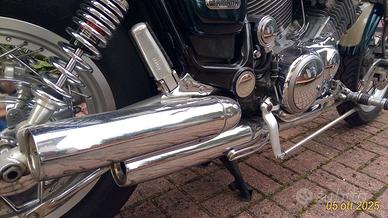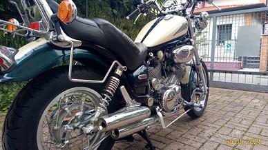 Moto tutta originale. Due soli proprietari e mia dal 2018. Tenuta molto bene, bicolore e senza necessità di interventi quindi pronta subito. Carrozzeria senza graffi e sedili senza tagli o screpolature. Ammortizzatori nuovi (originali al seguito), pedane avanzate (originali al seguito). Tagliantadata e venduta con revisione fatta ma senza passaggio di proprietà. Motore perfetto con quasi 65 CV faceva conocorrenza alle HARLEY 883. Corredata anche marmitta alternativa aperta mai usata direttamente e borse laterali . Gommata nuova da poco. Manutenzione sempre fatta da me ogni anno (ho altre 5 moto mie che seguo in garage) con prodotti NGK MOTUL HIFLO. Bollo ridotto e anche assicurazione.