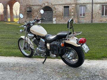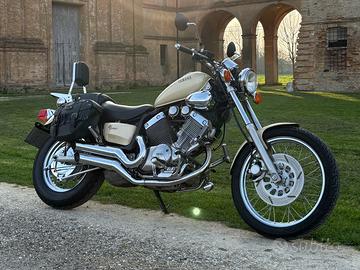 Yamaha XV 535 Virago anno 1990. Km 40.330 Condizioni eccellenti. Colorazione rara. Sempre tenuta in garage. Moto completamente originale e iscritta a registro storico. Tagliandata, batteria nuova, gomme nuove. Assicurata e con revisione regolare. Completa di borse laterali, sissy bar, pedane poggiapiedi aggiuntive, luce ausiliaria inferiore blu. Disponibili anche parabrezza, portapacchi e bauletto givi. Prezzo leggermente trattabile.