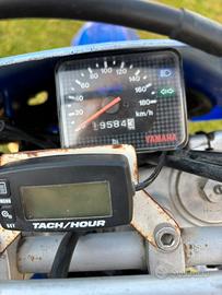 Vendo Yamaha WR 400F del 1998 Lavori eseguiti dal precedente proprietario (con il quale ha fatto 300 km prima di vedermelo ) : Pistone + lappatura cilindro e segmenti nuovi. Smerigliato valvole e rifatto gioco. Cuscinetti di banco nuovi. Catena distribuzione nuova Paraoli + tutte le guarnizioni Comprese quelle della pompa acqua Freni nuovi, (dischi e pastiglie). Ingrassato tutti i cuscinetti. Revisione degli snodi sospensione (cuscinetti e perni nuovi). Olio forcella nuovo. Filtro aria nuovo. Trasmissione nuova catena+corona+pignone. Scarico dominator con db killer ( ho anche l’originale ) Appena cambiati radiatori ( alluminio ) e guarnizione copri valvole Tagliandata ogni 1000 km circa !! Avviamento solo a pedale !! Omologato!!