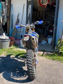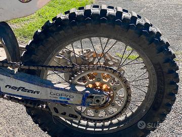 Vendo Enduro come da foto, forcelle ohlins anteriori revisionate da poco, gomma posteriore con mousse e all'80%, gomma anteriore 80%, in aggiunta alla moto vengono date due coppie di tutte le plastiche da poter cambiare, la moto è in ottime condizioni vari pezzi in carbonio, para forcelle posteriori, motore con 26h e 8 ore dall'ultimo cambio olio e filtro olio, olio freni e pasticche cambiate da poco, accensione sia elettronica che a pedalina, dischi forati a fiore sia anteriore che posteriore