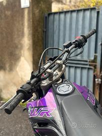 Yamaha WR125X del 2014, prezzo leggermente trattabile La moto è dotata di: - Pneumatici Pirelli ( avanti e dietro ) - Specchietto retrovisore personalizzato - Wrapping moto - Portatarga pieghevole - Scarico Mivv (rimappato) - Faro Angel Eye - Parafango KTM/YZ - Nuovo sistema di blocco a sterzo - Luce di direzione personalizzata - Nuovo rivestimento della sella - Nuovo manubrio (in wrap carbonio) - Cambio rapido ( Quickshift ) - Imbottitura per manubrio in spugna Pro Taper E stato cambiato: - Filtro olio - Filtro aria - Olio del motore - Candele Nella foto manca il paravento con l'adesivo viola e le strisce per i raggi del cerchione (in viola) Sono inclusi anche tutti i pezzi originali come: - Scarico originale - Portatarga - Parafango anteriore secondario - manubrio