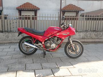 Yamaha del ' 92 a carburatori e 4 cilindri raffreddata ad aria, i motori di una volta lo facevano fatti bene, perfetta e affidabile usata tutti i giorni col caldo e col ghiaccia si accende sempre e non ti lascia mai a piedi. Tenuta sempre bene, tutta originale tranne manubrio e parabrezza che ho e cedo insieme alla moto, gode di iscrizione al registro storico Fmi quindi paga assicurazione 170? tutto l anno, bollo non paga niente, puo circolare centri storici e fasce verdi. Moto non facilissima da guidare in quanto priva di abs e controlli moderni quindi una moto abbastanza nervosa per i suoi 53 cavalli che comunque si fanno sentire tutti e nonostante l età.
