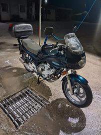 Vendo splendida Yamaha Xj 600 Diversion del 93 pari al nuovo e con soli 35.000 km. Con gomme nuove,kit trasmissione nuovo,tagliando ordinario fatto,applicazione tankerite per bonifica serbatoio,regolazione carburazione e controllo generico. Il tutto e tanto altro è stato annotato,di volta in volta,su una scheda dei lavori,creata nel 2020,nel momento del riavvio della moto,dopo un lungo letargo. La ciclistica è impeccabile e non ha mai subito urti,con sospensioni ottime e impianto frenante perfetto,con olio e tubazioni sostituiti di recente,le forcelle sono state appena revisionate. La verniciatura e le plastiche sono ottime,con solo lievissimi segni del tempo. La moto è già più che trentennale e gode di bollo ridotto a soli 10 euro annui e di assicurazione storica di 170 euro annui. La moto è pronto uso e non necessita di interventi. Perfetta sia per utilizzo quotidiano,che per turismo a medio e lungo raggio,vista la sua eccellente comodità di seduta,sia per conducente che per passeggero,nonché per raduni di moto e auto storiche. Dotata di portapacchi e bauletto da 54 litri,dove vanno due caschi integrali e tanto altro. Inoltre ha una meccanica semplice e alla portata di tutti,visto che,la manutenzione ordinaria,la si può svolgere in piena autonomia,con un minimo di dimestichezza. Vendo a euro 1.200 poco trattabili. Per qualsiasi informazione contattatemi al 3512718135.
