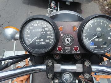 LEGGI TUTTO Yamaha mod. XS 2 cilindrata 650 cc. immatricolazione 1976 ma di produzione 1974 circa...... storica.... ISCRITTA.... ASI Con quasi cinquant'anni... Mod. XS 2 Colorazione " Stella Nera " Batteria Nuova Escluso spedizione Ottimo conservato con poco più di 15000 km originali Già iscritta ASI targa ORO Dal vecchio proprietario Ultima serie, quella con doppio freno a disco. Ottima così o come base per chi vuole trasformarla in café - racer... Avvitamento sia elettrico che a pedale. È parte al primo colpo a pedale se si usa regolarmente. Questa moto è un gioiellino della casa Giapponese YAMAHA è una CHIMERA del mondo motociclistico. N. B. : LA MOTO È FUNZIONANTE MA SICCOME E STATA FERMA CONSIGLIO UN TAGLIANDO E IO HO GIÀ I FILTRI CHE SERVONO E CHE SARANNO A DISPOSIZIONE PER CHI ACQUISTA COME REGALO. IN PIÙ ho comprato anche il suo stop originale che sarà anch'esso a disposizione....Ma il Prezzo è da stabilire... Al momento... E lo cedo solo ed Assolutamente a chi acquista la moto... Non lo vendo a parte ...Grazie No perditempo....