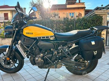 Vendo, causa figli piccoli, Yamaha xsr 700 60 anniversario.Tenuta sempre in garage.Accessoriata con quadlock con antivibrazione, prese usb per ricarica cellurare con pulsante di on/off, borse laterali givi con doppio telaio di ricambio e copertura per la pioggia.Cavalletto per rialzo gomma posteriore.Gomme sostituite l’anno scorso(Pirelli Diablo rosso 4)km percorsi 500 circa.Totale km circa 17000.