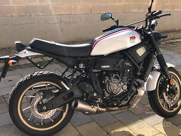 Vendo Yamaha XSR 700 XTribute, immatricolata a maggio del 2021, moto euro 5 in ottime condizioni con pochissimi km (circa 3574 km), usata pochissimo e sempre tenuta in garage, mai incidentata ne caduta. Tagliandi effettuati regolarmente sempre in officina Yamaha, bollo pagato fino a febbraio 2027, garanzia Yamaha fino a maggio 2026 e revisione fino a maggio 2027. Compreso nel prezzo borsa laterale morbida sx e cavalletto posteriore. Passaggio di proprietà a carico dell'acquirente. Prezzo leggermente trattabile.