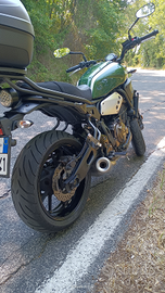 Vendo splendida XSR 700, eccellente motore bicilindrico CP2 con 75 CV con consumi veramente irrisori, colore verde green, tenuta gelosamente in box privato, perfetta mai caduta,moto molto maneggevole con i suoi soli 186kg in ordine di marcia, accessori extra: copri steli forcelle anteriori,due parafanghi anteriori uno corto come da foto e quello originale, copri radiatore, dotata di presa USB, prolungamento cavalletto laterale, bauletto, regalo due protezioni laterali radiatore mai montati. Gommata all'85%, tagliandata con olio e tutti i filtri, sostituito kit catena corona e pignone marca DID,circa 2000 km fa, la revisione scade a luglio 2026 e il bollo a febbraio 2026, ovviamente dotata delle doppie chiavi, vendo solo per cambio tipologia, si può visionare con meccanico di fiducia,non affaristi e perditempo grazie, solo se veramente interessati !!!