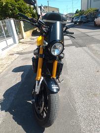 Causa acquisto moto più tranquilla (Moto Guzzi California) vendo splendida XSR900 60th Anniversary, livrea "Speed block". La moto non ha nessun difetto meccanico, solo qualche LIEVISSIMO segno dell'età (qualche graffio, in realtà). La moto monta i seguenti accessori: frecce mini bullet cromate, cupolino De Pretto, fianchetti neri, ammortizzatore di sterzo, protezioni ai piedini della forcella, base cavalletto maggiorata, staffe e bauletto. Fornisco anche una borsa laterale Motech con staffa di montaggio. Includo anche due gomme posteriori e una anteriore (Michelin Road Pilot), che a occhio garantiscono oltre 15.000km di percorrenza.