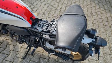 Yamaha XSR700 XTribute anno 2021, versione ispirata alla storica Yamaha XT500, con livrea bianco/rossa e cerchi dorati.