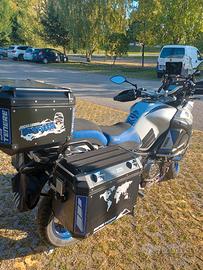 Ho cambiato i cuscinetti di sterzo per usura e controllo sospensioni e montato gomme Dunlop trail meridian il 13/12/24, attualmente hanno 9000 kM . Ho fatto rifare da selleria Verona la sella in alcantara con vari strati di schiumato di varia compressione con canale sacro cocigeo che permette lunghe percorrenze (ho tenuto comunque le coperture originali).