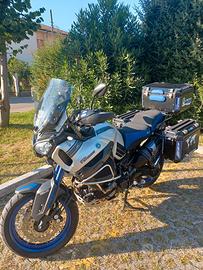 La moto monta faretti supplementari, paramotore paracardano, paracarena e profili in carbonio essendo modello Worldcrosser