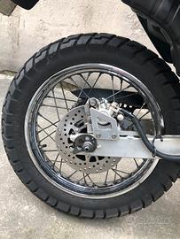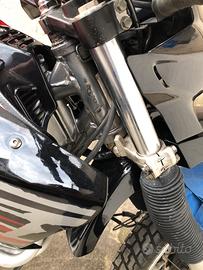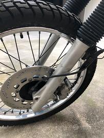 Restauro totale di ciclistica e di motore.Revisione forcella e mono,tutti i cuscinetti ruote e di sterzo nuovi ,cerchi e gomme seminuovi,dischi freno Brembo serie Oro nuovi pinze e pompe freni revisionate con pastiglie nuove,plastiche rifatte originali.Motore: rettifica cilindro con pistone nuovo come la Cat distribuzione tutte le tenute e i cuscinetti, paraoli,guarnizioni,frizione ecc tutto nuovo moto a cui finire il rodaggio ha percorso 400 km . Iscritta registro storico FMI.
