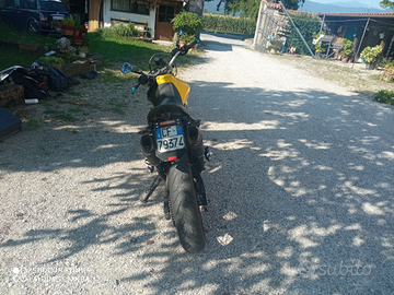 Moto con un sacco di lavori fatti per rimetterla a nuovo! Forcelle davanti appena rifatte, scarici con omologazione cartacea made in Italy nuovi ancora in garanzia (650€), gioco valvole, serbatoio appena trattato con tankerite, e riverniciato a metà di nero, gomme al 65% Pirelli Diablo, messo apposto l'impianto elettrico, manca solo il sensore di velocità, ma se non la vendo subito sarà messo apposto anche quello, tagliando completo fatto circa 1 mese fa, solo olio, filtro aria e pulizia catena, pastiglie e freni ancora in ottimo stato. Pulizia intera e cambio liquido refrigerante fatto 1 mese fa con il tagliando. Faro cambiato e omologato, pedaline rialzate, e semplicemente scarenata, l'avevo comprata così perché mi piace moooolto di più.
