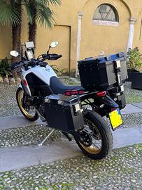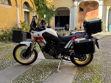 Vendo purtroppo per motivi personali Yamaha Teneré 700 edizione RALLY. Circa 7000 km. Appena tagliandata. Qualche segno sulla manopola sinistra e sul paramotore (che è un accessorio). Vendo come da immagini il kit completo di paramotore, marmitta akrapovic di serie + marmitta classica, portavaligie laterali + portavaligia posteriore, 3 valigie rigide, impianto elettrico collegato a navigatore Garmin Zumo XT e facilitazione per caricamento batteria, cavalletto centrale, borsa serbatoio givi più eventualmente altre borse