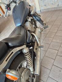 La moto è stata personalizzata con borse laterali e poggiaschiena per il passeggero. Presenta normali segni estetici dovuti all'usura del tempo, ma è perfettamente funzionante.